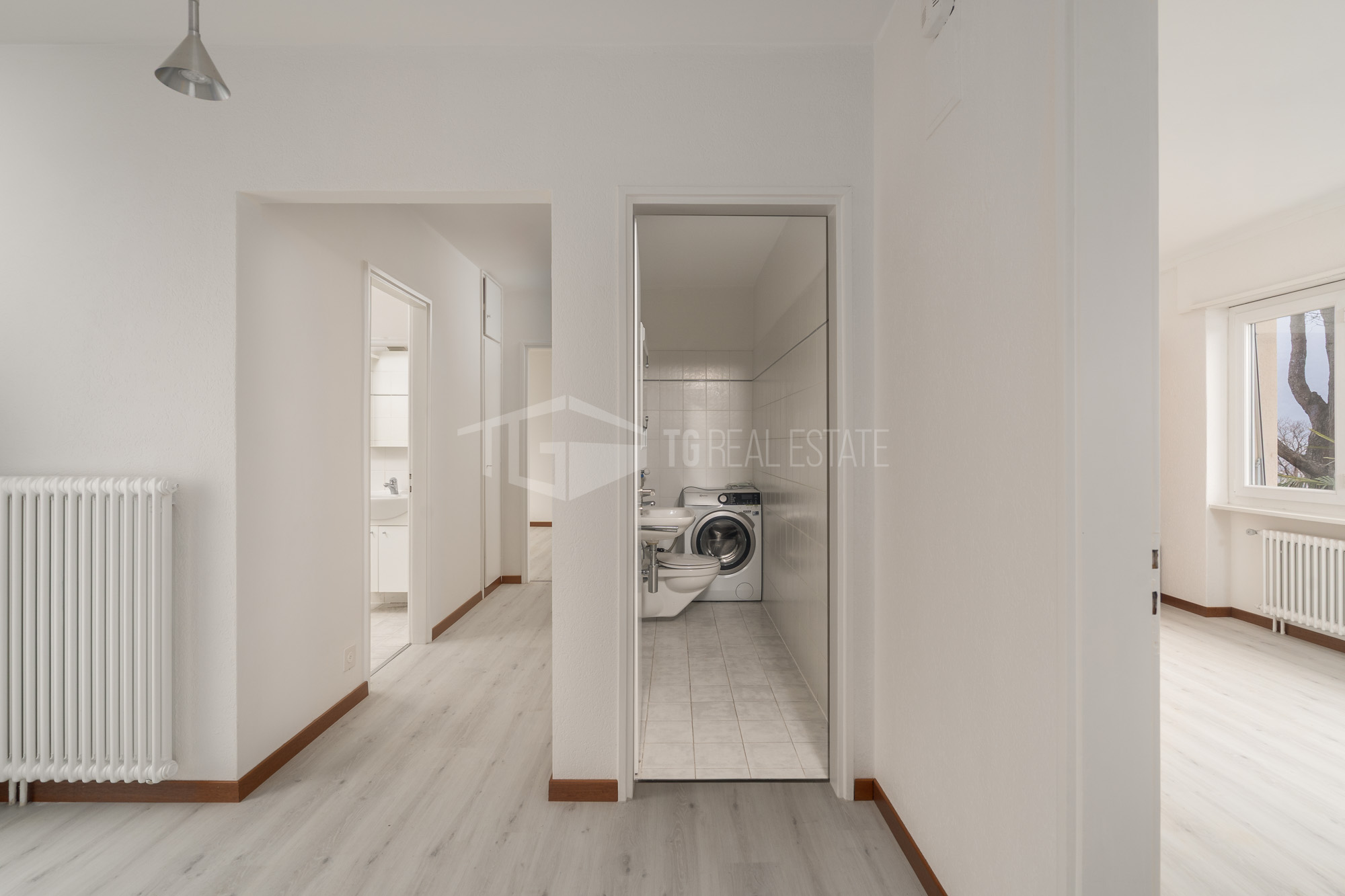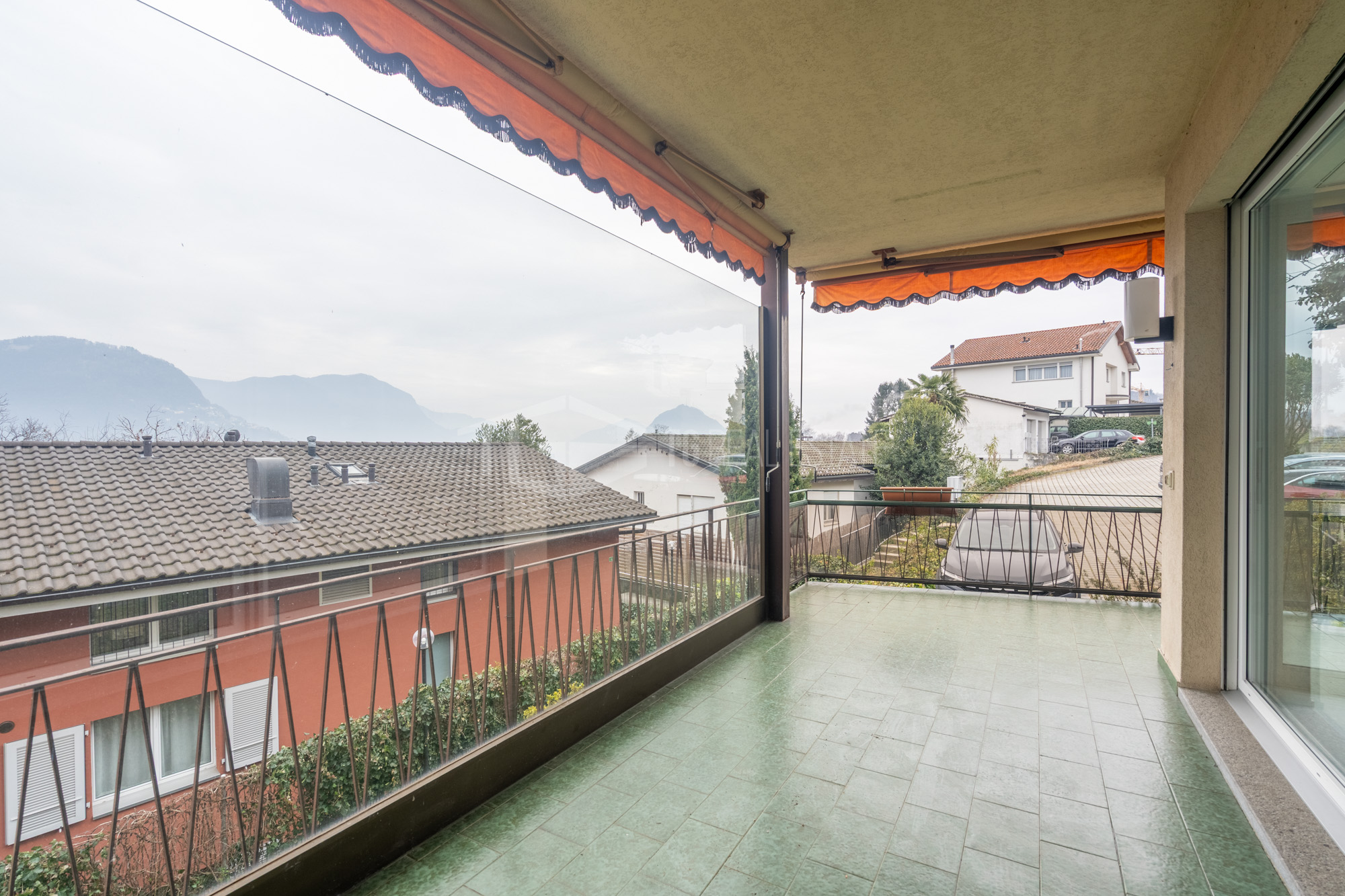 A Comano, in una zona tranquilla con vista sul verde, si trova questo appartamento posto al piano terra di una palazzina di 3 appartamenti.