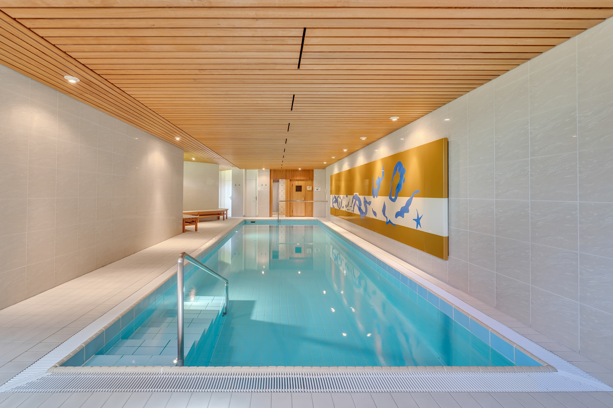 L’immobile gode di ogni comfort: riscaldamento a serpentine, bagni finestrati, impianto di rinfrescamento e lavanderia sullo stesso piano, piscina coperta e sauna.