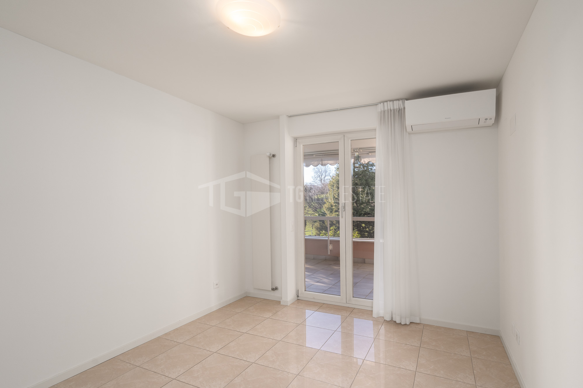 L’appartamento si compone di un comodo ingresso con armadi a muri, da cui si accede alla zona living, con soggiorno affacciato sul terrazzo. Questo ambiente vive in sinergia con l’esterno, grazie all’accesso diretto al spazioso terrazzo coperto con una meravigliosa vista sul verde.