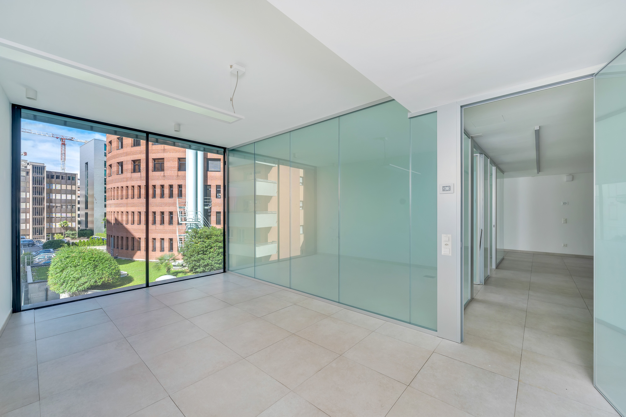 Questo moderno immobile, ad uso ufficio, si trova a Paradiso, nella nuova piazza Guidino, in una zona ben servita e vicino allo svincolo stradale Lugano Sud.