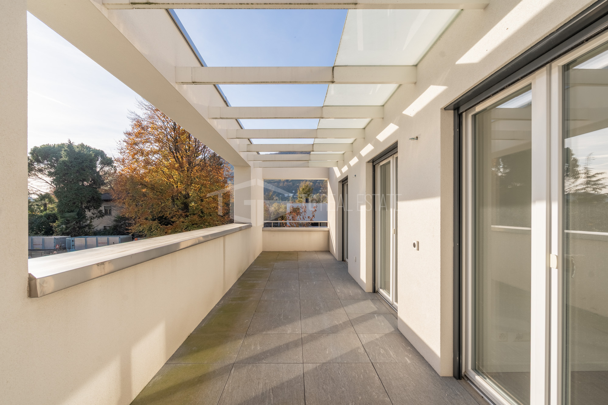 Le camere si affaciano sul ampio terrazzo parzialmente coperto.