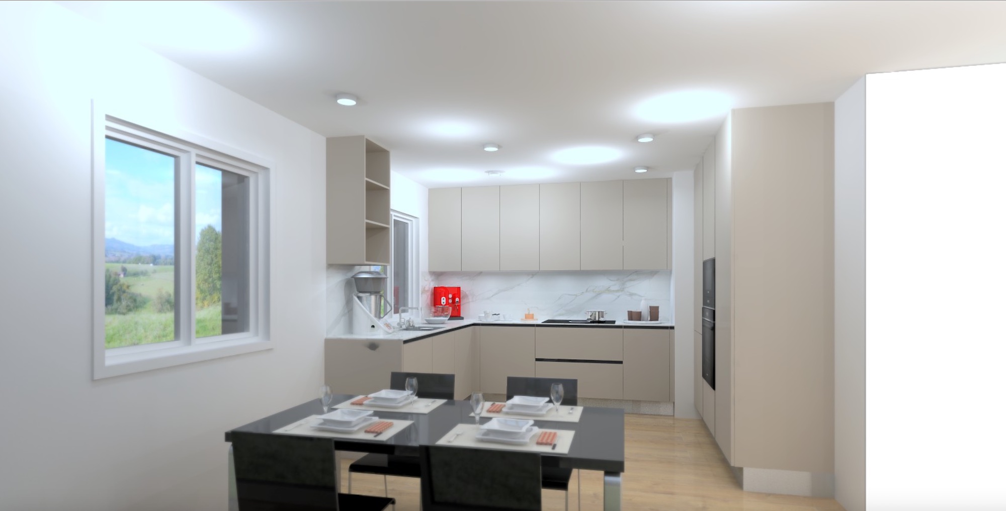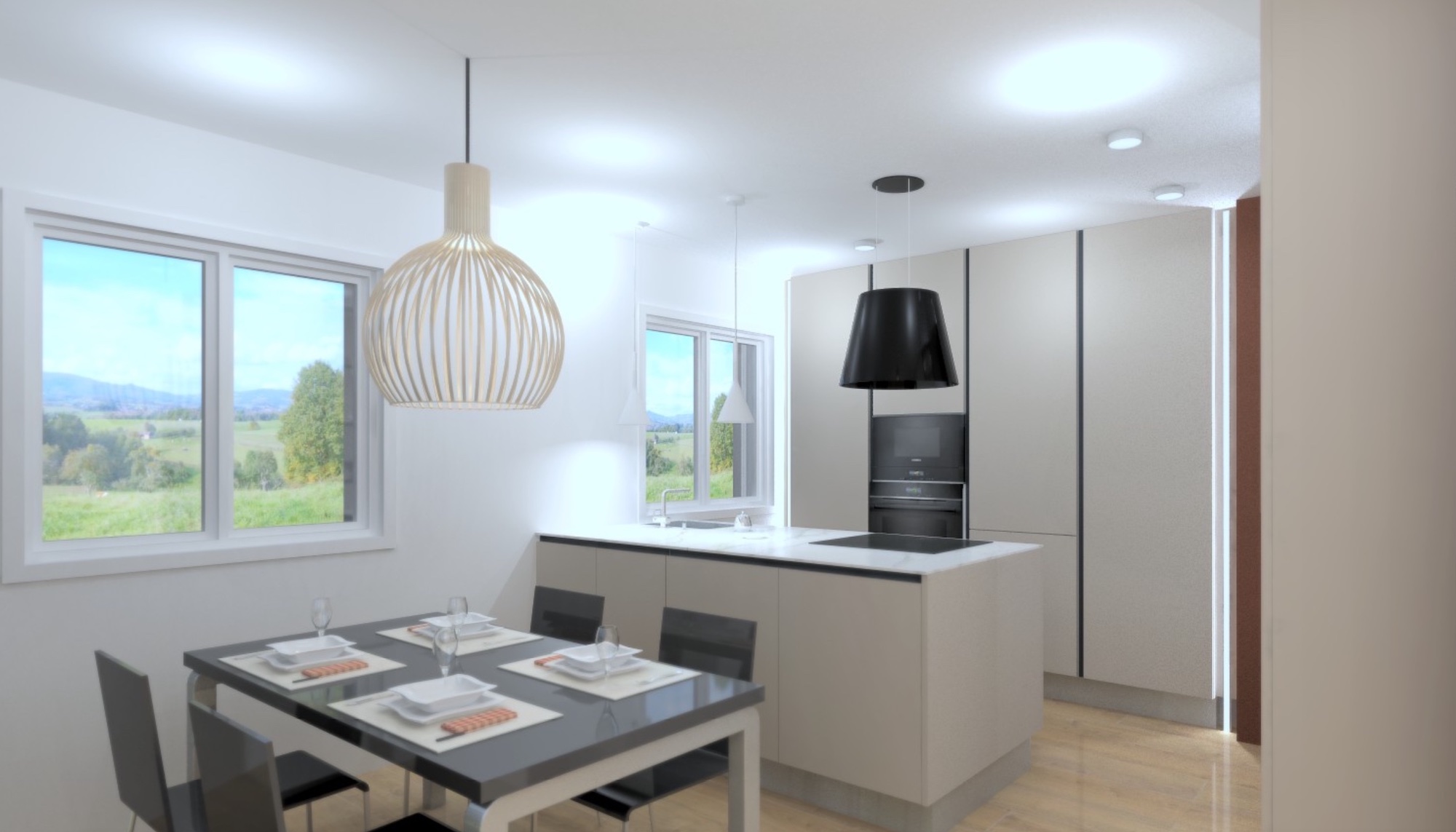 - Moderna cucina con isola, aperta sulla zona pranzo