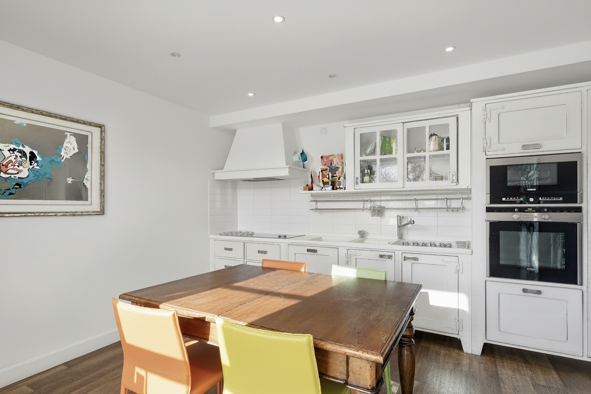 Ampio soggiorno open space di 40 m² con cucina abitabile, separata da una raffinata porta a vetro, entrambi con accesso diretto alla terrazza