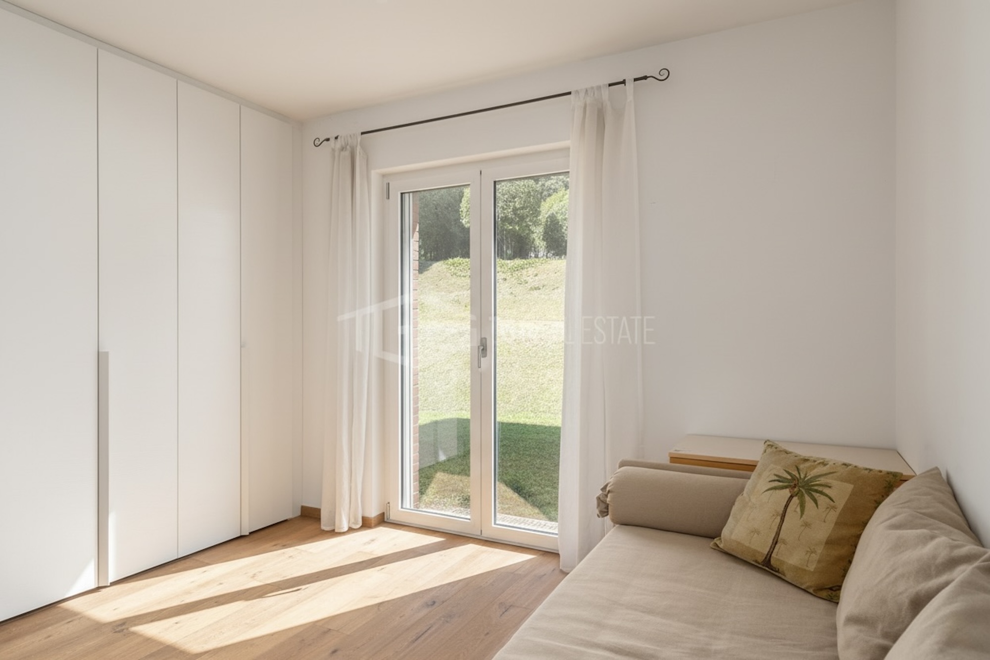 Con una superficie abitabile di circa 128 m², l’attico rappresenta una soluzione ideale per famiglie o per chi desidera vivere in un ambiente sofisticato, accogliente e luminoso tutto l’anno, grazie alla perfetta esposizione solare a sud.
